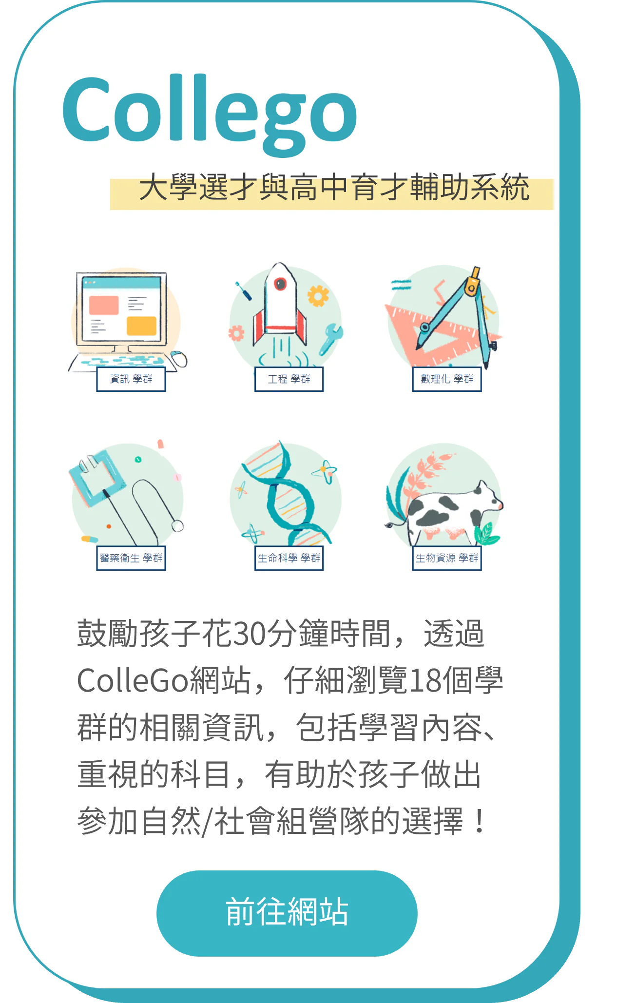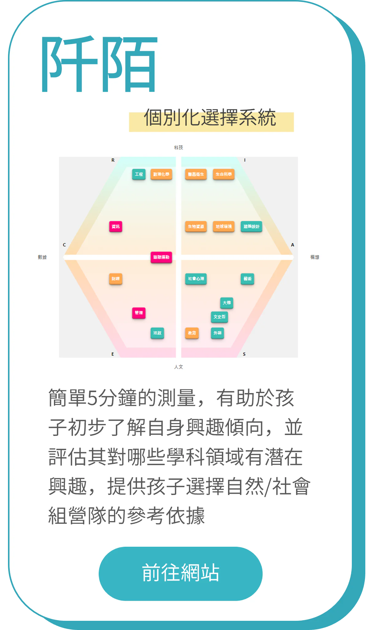 ▼建議先參考以下兩個外部網站資源,初步判斷孩子較有興趣的是自然組還社會組的學群!