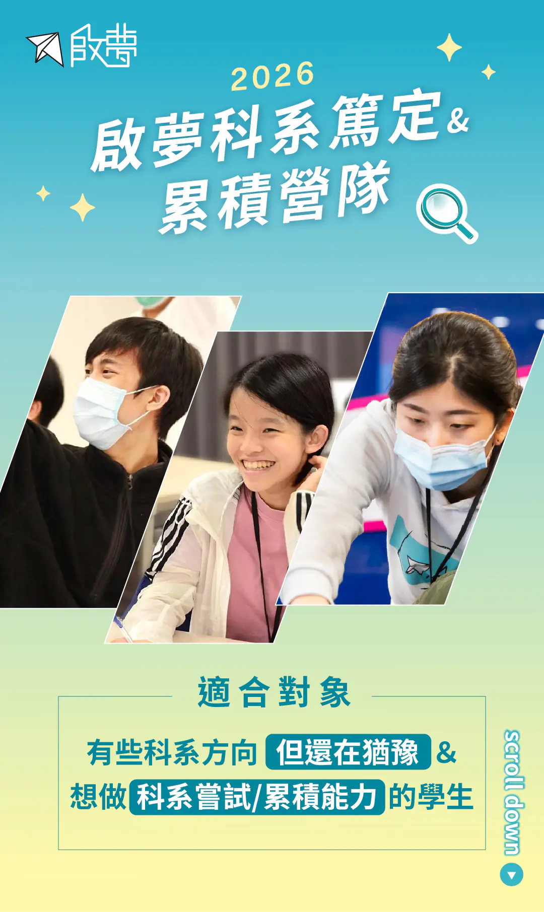 建議先參加啟夢科系探索營隊,有初步方向後,再接續參加【科系篤定&累積營隊】