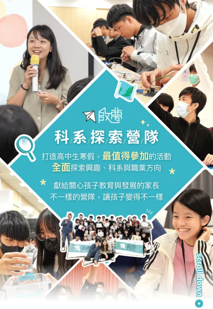 開發的內容包含:地毯式介紹科系、科系體驗活動、閱讀入門書等。啟夢已創辦5年,幫助1600多位學生找到方向,並且獲得教育創新100等獎項肯定,請家長放心讓孩子參加啟夢營隊。
